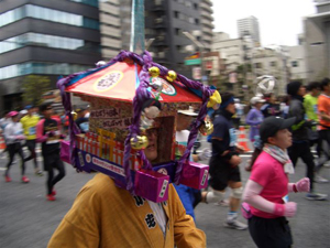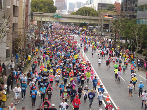 新宿、都庁前をスタートして、約35分余りで芝・増上寺(東京タワーの近く)の地点をトップグループが通過します。私は毎年、その辺りでカメラを手に待ち受けてます。