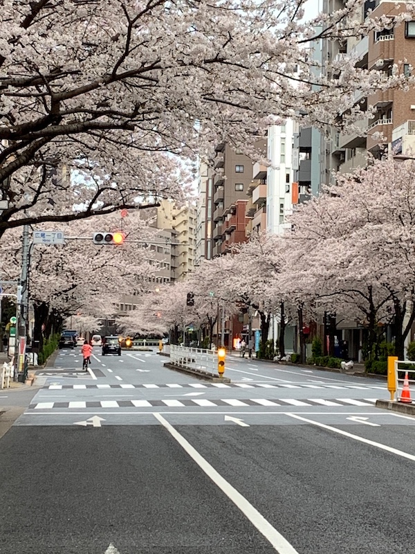 今年も又 広尾、明治通りの お花見散歩が出来た。朝6時45分から40分ほど。見事な満開桜だった。桜が咲き誇ってる美しさは 青い空が良く似合う。 見て下さい。この美しい空と桜。 桜を見上げてばかりいるとつまずいて転びそう。フと足元を見るとつい昨日まで通行人の目を楽しませていた花びら達が地べたに散って集まっていた。 今年も有難う。 来年 又 会おう・・・ 僕が元気でいたならば。 2021,3,25,